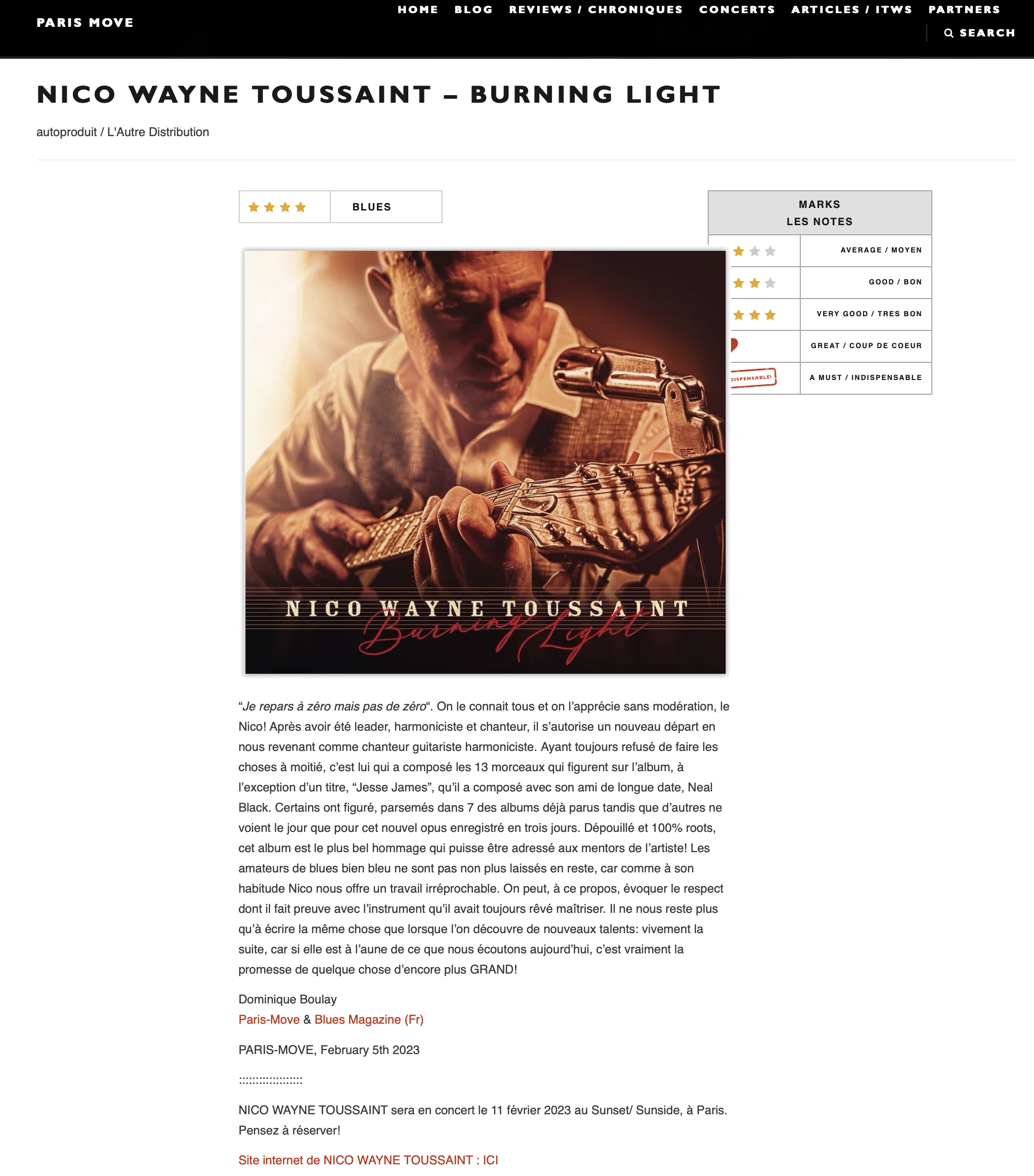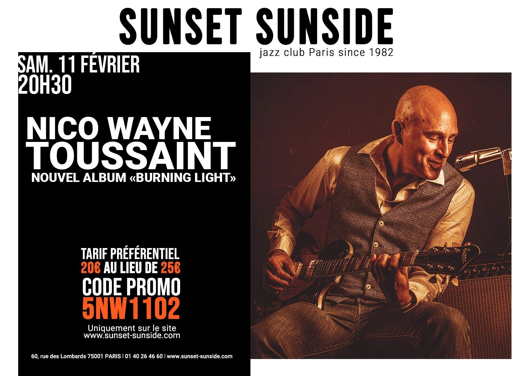 L’Œil du spectacle session acoustique Nico Wayne Toussaint « Burning Light » - Sunset - 11/2/2023