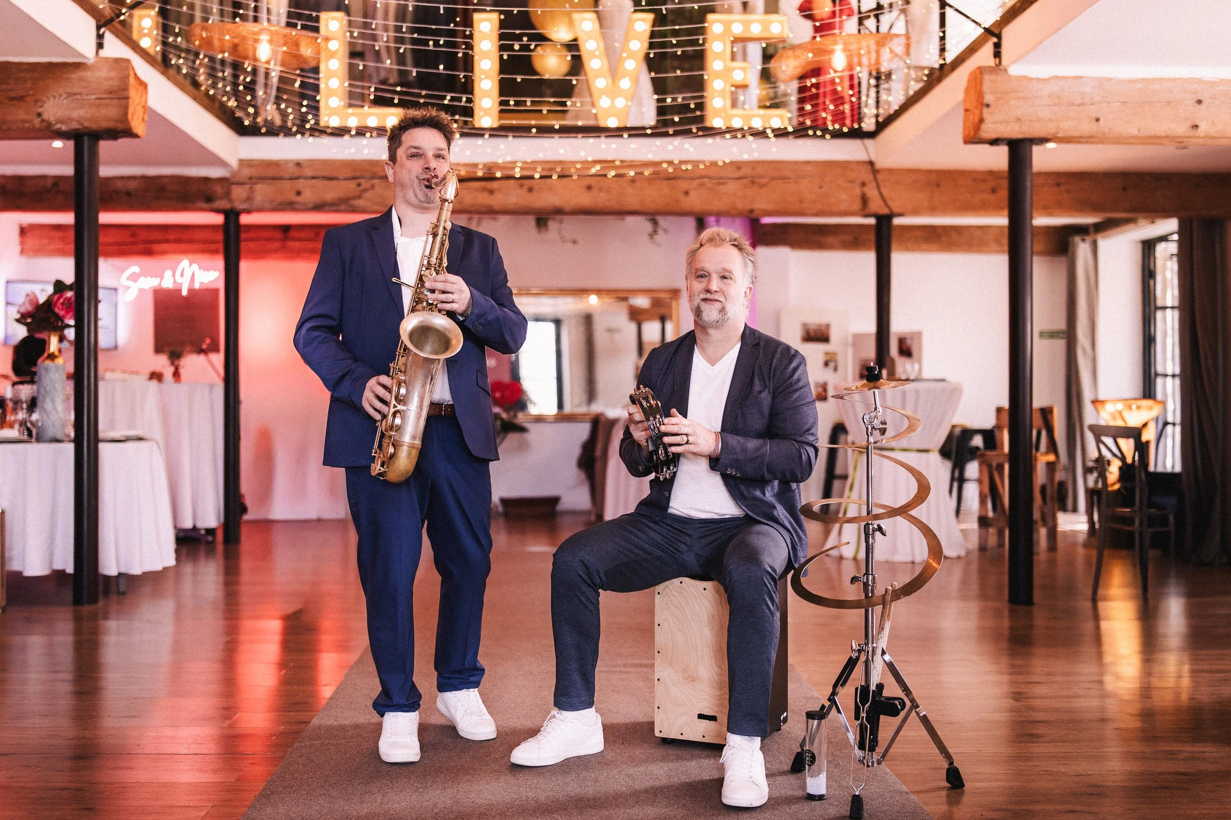 Un duo saxophone–percussions complice et raffiné, qui revisite les grands tubes pop avec une touche d’élégance et de fraîcheur. Leur musique crée une atmosphère festive et lumineuse, parfaite pour les soirées d’été, où convivialité et énergie live se mêlent naturellement.